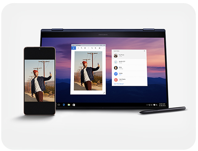 *Quick Share consente la condivisione di foto, video e file tra dispositivi Samsung Galaxy. **Disponibile sui dispositivi con One UI 2.1 o versioni superiori installate; richiede inoltre l'aggiornamento delle app MDE Service Framework e Quick Share. ***Per l'utilizzo di Quick Share si richiedono Bluetooth Low Energy e una connessione Wi-Fi. ****Sequenza abbreviata. Immagine simulata a scopo illustrativo. L'interfaccia utente potrebbe subire delle variazioni.